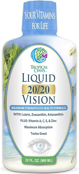 Amazon Com Liquid 20 20 Vision Eye Vitamin Formula W 20mg Lutein 4mg Zeaxanthin 4mg Astaxanthin For Vision Support Max Absorption Great Taste No Pills To Swallow 32 Serv 32oz Health Personal